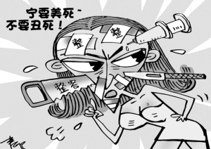 “蛇精女”比较极端。但在一个看脸的时代,许多人认定,“长得好看的人才有未来”,这不光是指找配偶,还包括求职、晋升、办企业……为了有未来,人们不惜花钱请人用锋利的刀和锉在自己脸上、身上割和剐,刀光剑影中,有人奇迹般地变美了,有人不幸残疾了,还有人静静地躺在手术台上,再也没醒来!娇弱的女子有时干出来的事,连壮士都在心中感到隐隐寒战。