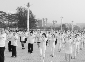 8月8日,郸城县在该县世纪广场举行“全民健身日”活动启动仪式。来自该县社会各界的近万人参加了当天的健身活动。图为健身活动现场。