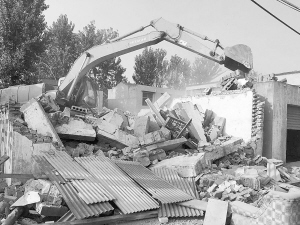 8月13日,川汇区小桥办事处联合川汇区城管局小桥中队40多人,对川汇区纬一路社区的2000多平方米“两违”建筑进行集中拆除。晚报记者 徐松 摄