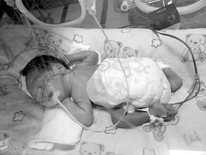 本报讯 “由于早产,我的双胞胎儿子大宝和小宝出生时,胳膊只有成人的大拇指粗,脑袋还没有成人的拳头大。”8月18日,住在扶沟娘家的李静愁眉不展地对记者说,目前孩子还在重症监护室里。