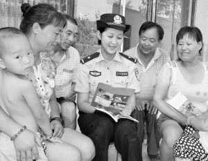 近日,扶沟县公安局组织包村民警深入辖区,向村民讲解防盗、防抢、防电信诈骗等安全防范知识,受到群众好评。图为民警在向村民讲解安全防范知识。