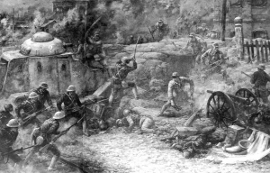 回到村后,十一二岁的我出于好奇并没有躲起来,反而爬上寨墙,偎依在垛口一侧,向西北方向望去,以窥究竟。