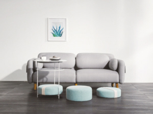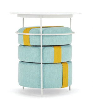 这款产品的灵感来自西班牙。马卡龙式的甜蜜造型,可以自由收放的边桌与坐垫完美组合。既可以是沙发边上二人世界的实用边桌,还可以解决小空间的聚会。当顶盖与坐垫组合时,可成为二人对坐的小茶几;当三个坐垫都散放下来时,围着沙发形成一个好友的聚会空间,太适合小居室空间了。