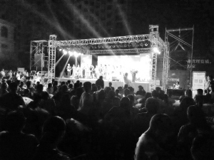 8月20日,是中华民族传统的七夕节,我市知名楼盘现代城在其销售中心举办了“爱要大声唱出来”大型庆典活动。外籍乐队、国内知名歌手及众多热恋情侣和单身男女纷纷登场,激情献唱,表达了对美好爱情的追求和向往。同时,现代城还举办了冷餐会、趣味DIY、寻宝游戏等活动,受到了市民的一致赞扬。图为演出活动现场。