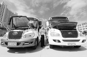 近日,河北承德县交警对全县校车进行检修维护,核查司机信息及驾驶资质,保障新学期学生的乘车安全。新华社记者 王晓 摄