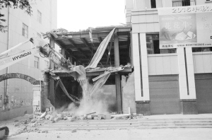当日9时许,周口晚报记者在现场看到,一台大型挖掘机正在对违章建筑进行拆除(如图)。为了维持现场秩序,确保行人和车辆安全,上百名城管队员拉起了警戒线。“为确保拆除工作顺利进行,我们此次专门组织了专业的拆除队伍。”川汇区城管局相关负责人告诉周口晚报记者,他们此前已向建筑方下发通知书,责令其自行拆除违章建筑,但一直不见行动。为了遏制“两违”的蔓延,他们决定对该处违章建筑依法进行强制拆除。