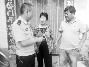 朱满是商水县练集镇时庄村人,今年已近六旬,由于又聋又哑,还有些智障,30年前不慎走失。朱满走失后,她的弟弟朱成军一直没有放弃寻找。在好心人的帮助下,前些天朱成军在山东鄄城找到了失散多年的朱满,一家人沉浸在团聚的喜悦中。朱满回家后,朱成军却有了心病:“姐的户口,咋弄?”为此,朱成军和90多岁的母亲李学英一起,向户籍警郭苍辉反映了情况。