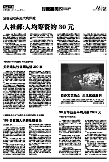 人社部:人均筹资约30元