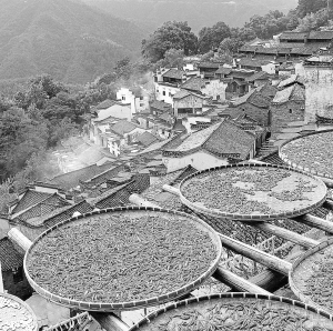 秋收的季节到了,村里的人们开始忙碌起来——掰玉米、割大豆、摘棉花、出花生等。村子里霎时变得拥挤起来,到处堆满了刚收回来的庄稼。院子里、街道旁,就连院墙上、屋顶上、树上等地方也都挂满了金黄的玉米。村边的空地上也成了天然的晒场,有人在晾晒大豆、芝麻、棉花。阳光下,大豆噼噼啪啪地响,芝麻蹦跳着离开母体。远处晾晒的红辣椒,像铺了一层红地毯,一眼望不到边。傍晚时分,晚归的人们在晒场边休息,谈论着今年的收成。