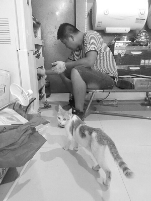 韩先生介绍,这只猫是他3年前从亲戚处抱来的。抱回家后,他没在意这只猫爱吃什么东西,只是喂它些剩饭菜。后来,他发现这只猫把馒头、青菜吃完了,却留下鱼、鸡块等肉食。这一反常现象,引起了他的注意。