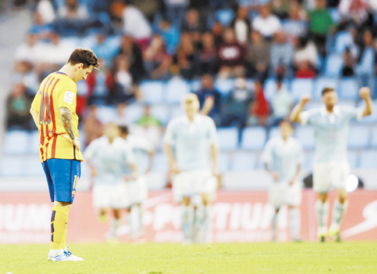 西甲联赛 内马尔进球无济于事 巴萨惨败让出榜首 据新华社电 西甲第五轮,巴塞罗那9月24日凌晨意外遭遇惨败。上赛季西甲冠军在客场以1∶4的比分被塞尔塔击败,并拱手让出了榜首的位置。 塞尔塔球员诺利托和阿斯帕斯在上半时先后有一球入账,为球队早早建立两球优势。而下半时,阿斯帕斯再入一球梅开二度。尽管巴萨方面由内马尔在比赛结束前打入一球缩小差距