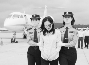 9月24日,在福州长乐机场,邝婉芳被强制遣返回中国。