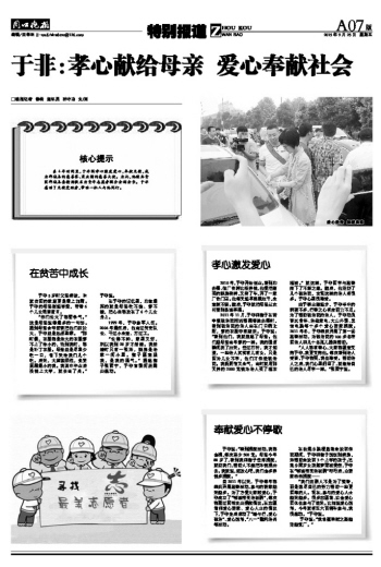 于非:孝心献给母亲 爱心奉献社会