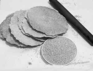 筛好芝麻,娘开始和面。做焦馍的面很有讲究,里面要加芝麻和少量的盐,面和得越软越劲道越好。面必须要能承受住小擀面杖一圈一圈地擀,直到把面擀得薄如蝉翼。