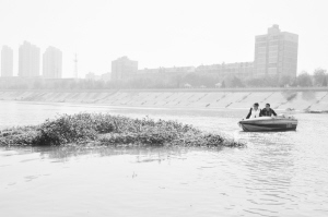 路面脏了有环卫工打扫,水面脏了谁来治理?10月14日,川汇区水利局及沿河的办事处组织开展沙颍河水面漂浮物治理行动。受多方面因素影响,沙颍河水面漂浮杂物较多,严重影响市容市貌,污染水资源。川汇区把河道及水面环境卫生管理作为城市管理的一项重要工作,纳入政府议事日程,加大资金投入,每年安排一定的预算资金用于河道及水面的环境卫生治理,要求每年至少组织两次以上集中清理行动。此次清理行动,川汇区出动5条快艇,对沙颍河中州大道桥至沙颍河大庆路桥间3.5公里水域进行全面治理,预计工期一周。图为川汇区水利局工作人员清理岸边生长的水草,将其拉至下游河滩内运走。
