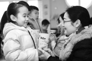 11月25日,孩子们用写有感恩和祝福话语的纸杯为自己的父母敬茶。