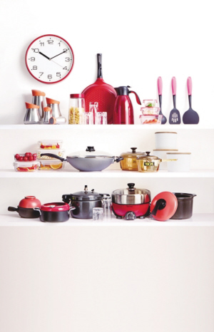 除了日常的清洁,厨房也可以装饰得别有风味。几个彩色的锅具、一块时尚的表,让每天做饭时的心情都变得大好。