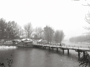 片片雪飞飘两岸。白隐鸿沟,楚汉如何辨?血脉相连红日转,和平最是民生愿。