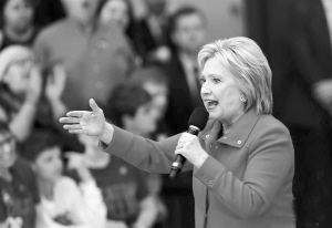 民主党总统竞选人、前国务卿希拉里·克林顿在艾奥瓦州锡达拉皮兹发表竞选演说(1月30日摄)。
