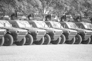 这是2月1日在肯尼亚首都内罗毕的武装警察总部拍摄该国购买的反恐装甲车辆。