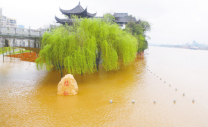 3月23日拍摄的被洪水包围的衡阳市石鼓区石鼓书院。