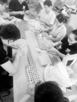 13时许,4S店组织10名员工对零钱进行清点,直到16时40分左右才清点完毕。经过清点,1元、5角的硬币共24000元,1元纸币4500元,共计28500元。“今天数钱真是数到手软。”4S店一名员工笑着说。线索提供 张先生