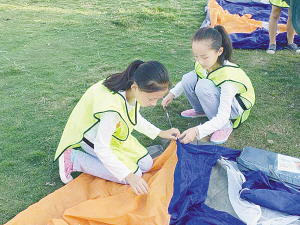 最受小营员们欢迎的是搭帐篷环节。“拉直帐篷角,慢慢地把帐篷支架穿进去……”小营员孟怡霖和伙伴张珺尧默契地搭起了属于自己的小帐篷。想到晚上能一起睡在帐篷里,两人兴奋地手舞足蹈。
