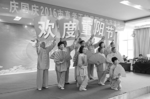 文艺演出庆重阳 10月9日上午,以“尊老敬老,爱老助老”为主题的2016年市直老干部重阳节文艺演出在市老干部活动中心举行,来自市直的100多名老同志参加演出。图为演出现场。 晚报记者 王凯 摄