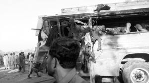 10月17日,在巴基斯坦旁遮普省,人们聚集在事故现场。