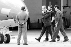 10月19日,在巴西巴西利亚,巴西前众议长爱德华多·库尼亚(左二)在警方护送下准备登机。