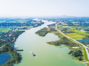 空中俯瞰整治完成的安吉县西苕溪小溪口段,西苕溪水系最后汇入太湖(11月3日摄)。