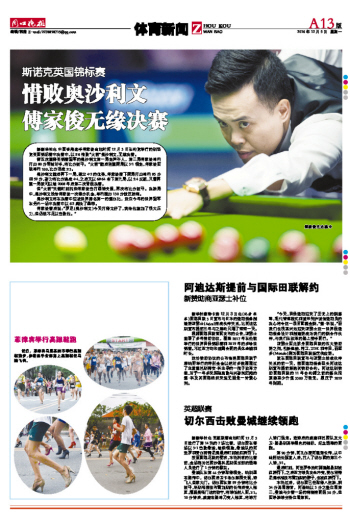 惜败奥沙利文 傅家俊无缘决赛