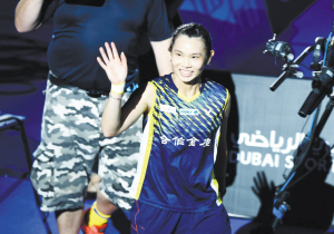 当地时间12月18日,戴资颖获胜后向观众挥手致意。当日,在迪拜举行的2016年世界羽联超级系列赛总决赛女单决赛中,中国台北选手戴资颖以2∶0战胜韩国选手成池铉,夺得冠军。