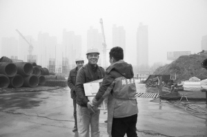 12月20日一早,周口晚报记者和河南恒自然食品有限公司员工来到市体育中心游泳馆建设工地,为忙碌在一线的农民工兄弟送去20公斤水饺,让他们在寒冬时节感受一份温暖。 晚报记者 张擘 摄