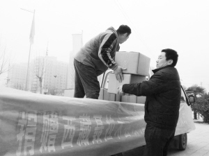 当天上午,在“大富城”售楼部,工作人员将成箱的爱心防寒服装上车。周口凯盛实业有限公司负责人方凯介绍,他得知西藏聂拉木县琐作乡中心小学390名家庭困难的学生急需过冬的防寒服后,决定向该学校捐赠400套防寒服,让孩子们温暖过冬。
