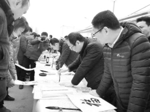 这边表彰活动一结束,那边书法家义写春联活动便火爆开场。王涛、樊华等从周口中心城区赶来的书法家,瞬间被群众热情感染。他们免费为群众义写春联,忙得不亦乐乎。活动现场,来自紫墨书法室的3位“小小书法家”表现不凡。年仅9岁的董庭嘉练习书法4年,多次在书法大赛中获奖。“看到父老乡亲争相要我写春联,我觉得很有成就感。”董庭嘉说,她以后要继续努力,把毛笔字写得更好。
