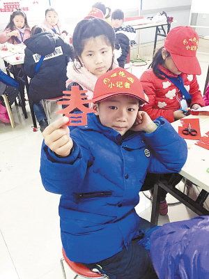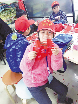 本报讯 “我学会剪大公鸡啦!”1月15日上午,周口儿童大世界六楼会议室,60余名小记者正在学习剪纸艺术,通过一双双小手的细心剪裁,大红的“春”字、引吭高歌的“大公鸡”引得家长一片赞誉,浓浓的年味儿扑面而来。连续两天里,两名专业老师在本报小记者部的配合下,让360余名小记者通过学习剪纸沐浴了一场“民俗风”。