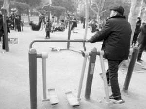 随后,周口晚报记者来到文昌大道上的周口公园假山后面的健身园。一些来这里游玩的市民,脱去厚厚的冬装,站在健身器材边耐心把玩起来。“在公园散步累了,不但可以坐到健身器材上歇歇脚,还可以锻炼一下身体各个部位的协调性,真是太好了!”一位在此游玩的市民笑着说。