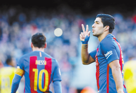 西甲联赛 巴萨大胜拉斯帕尔马斯 新华社马德里1月14日电 巴塞罗那14日在诺坎普以5∶0大胜拉斯帕尔马斯,暂时将在西甲积分榜上与皇马的距离拉近至2分。 尽管伊涅斯塔和内马尔缺阵,但梅西和苏亚雷斯等人的进球还是助巴萨在主场完胜对手。目前,巴萨比皇马多赛两场,在西甲积分榜上暂时以38分位居第二。 巴萨在第13分钟由苏亚雷斯接戈麦斯的传中