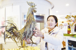 为迎接鸡年到来,河南洛阳棕编艺人贾淑娟历时一个月创作出近百只活灵活现的“金鸡”棕编作品,制作工序包括棕榈叶的选材、熏蒸、阴晾、编制、组合、粘贴等。新华社发