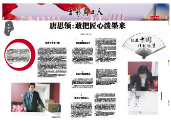 依靠辛勤努力,唐思领连续几次参加了《第三届中国书坛新人作品展》《全国第二届楹联展》《中日书道交流大展》《全国首届扇面书法展》等国家级书展,并取得成功。