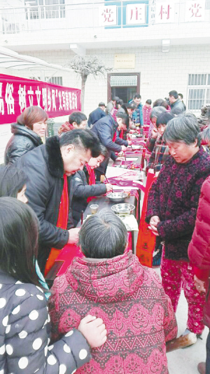 1月17日上午,川汇区金海路办事处联合川汇区文联到辖区内的党庄行政村和周套楼行政村开展义写春联活动,为辖区群众送上新春祝福。晚报记者 王凯 摄