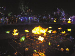 本报讯 1月23日,为期一个月的周口颍川生态园颍川灯会正式拉开帷幕(下图),记者从主办方处获悉,颍川灯会举办期间,游客们不仅可以到园内观看春节、元宵节灯展,而且展会现场每天都会上演民俗表演、杂技、摩托车特技等精彩好戏。