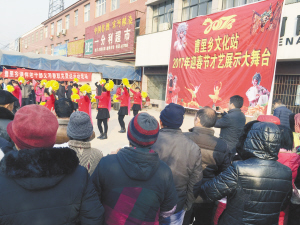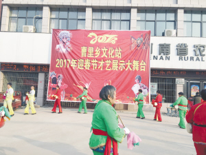 在扶沟县曹里乡的大街上,虽然才早上8点多,但办年货的民众已是熙熙攘攘了。随着该乡文化站里大喇叭的声音响起,民众的目光瞬间被吸引到了这里。戏曲、广场舞、歌曲等节目让围观的民众笑声不断,现场不时爆发出阵阵掌声。