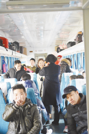 | 列车上的旅客。对许多人而言,短暂的相聚之后,就是又一次长长的别离。 |
