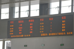 | 不停闪烁着的车次,提醒着旅客离开周口的时间。 |
