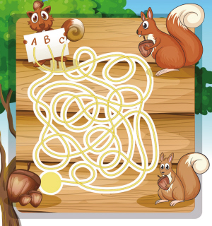 小松鼠想要送松果,但是它不知道哪条路才能到达终点,你来帮它找一下吧!