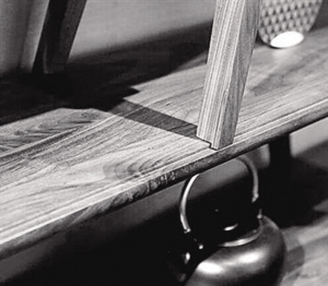 这是一款趣味十足的博古架。与传统的博古架一脸严肃的设计不同,新设计摒弃传统博古架方正厚重的样式,条凳一腿取其长、一腿取其短,呈梯形交错层叠而上,整体造型富有山的灵气,增加空间的传统韵味。