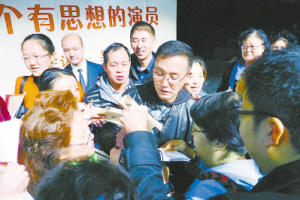 “戏剧是非常神圣的,我之前参加过许多影视拍摄,也到国外看过各类戏剧表演,真正震撼人心的是戏剧,它是有文化、有传承、有功底的。”讲座一开始,吴刚便这样表达戏剧艺术在自己心目中的地位,并特别提到北京人艺对自己的培养:“获得金鸡奖最佳男演员的时候,我说的第一句话就是:‘我要感谢北京人民艺术剧院培养了我,没有北京人民艺术剧院就没有我。’这是我发自内心的话。因为在剧院我见过真正的艺术家是什么样子,他们对做人、对做戏是什么态度。能够跟于是之先生、郑榕先生等艺术家们交流,我是很荣幸的,这种精神是一种传承。我能有今天,真的感谢北京人艺的这些老先生们。”