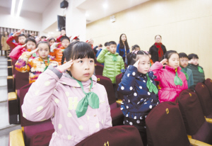 2月16日,黄浦区第一中心小学的学生参加升国旗仪式。
